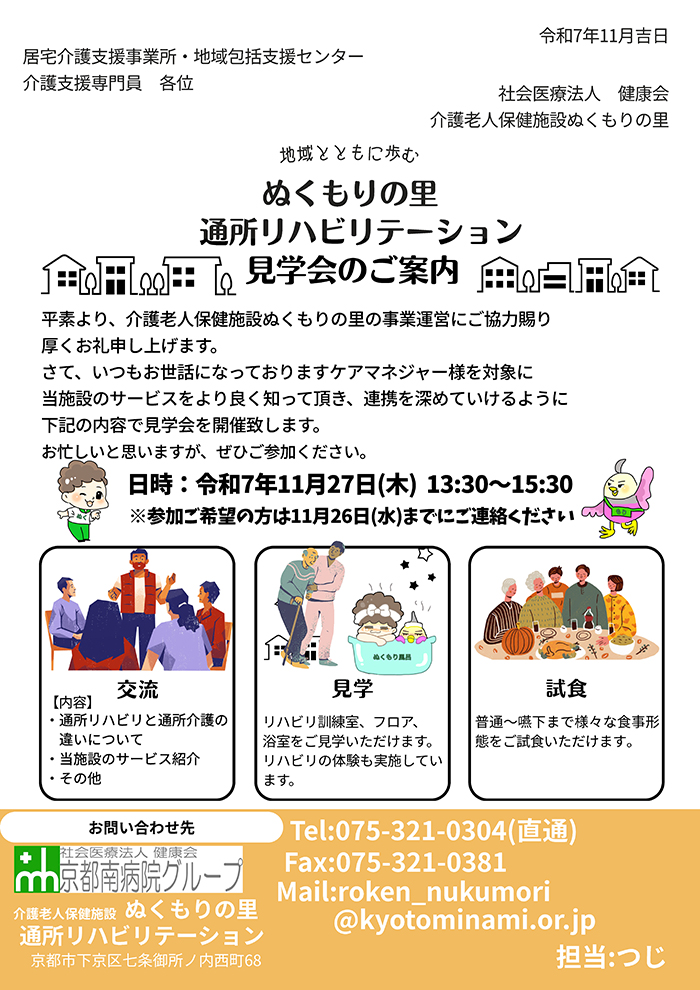 メール:roken_nukumori@kyotominami.or.jp 担当:つじ