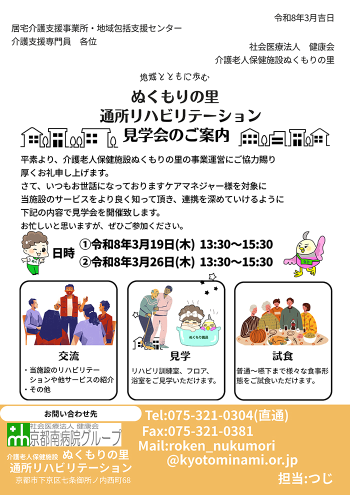 メール:roken_nukumori@kyotominami.or.jp 担当:つじ