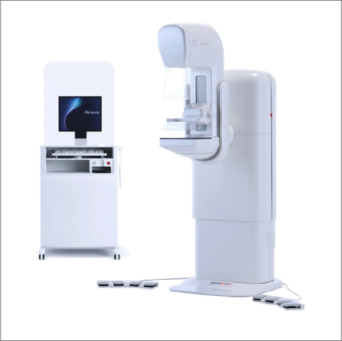 乳房はやわらかい組織なので、専用の装置を使って撮影します。